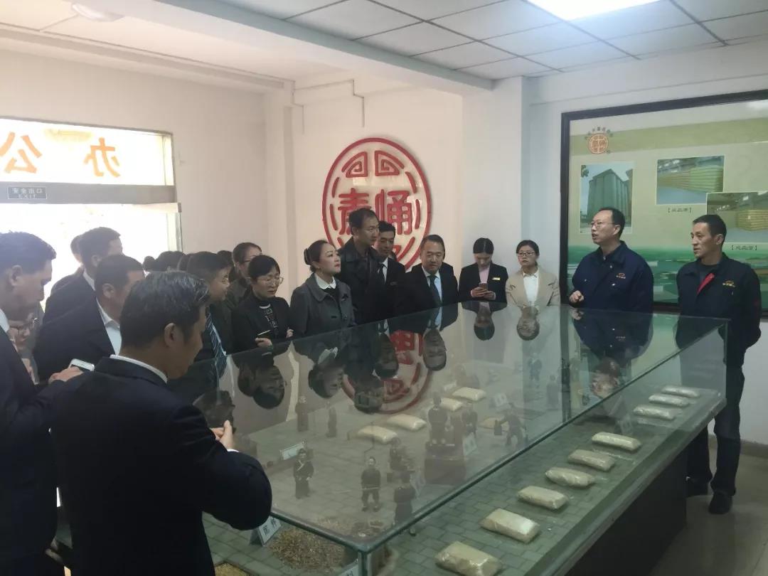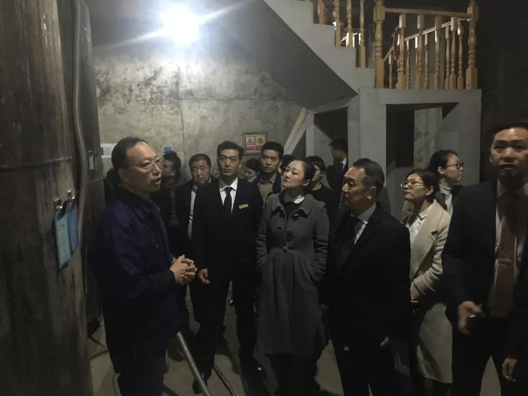 廠長賀軍強帶領廠領導班子為參觀者進行講解,從廠情廠貌、釀造工藝沙盤、白酒釀造車間到二號酒庫、五號酒庫、七號酒庫展開詳細解說,并進行現場品評體驗。